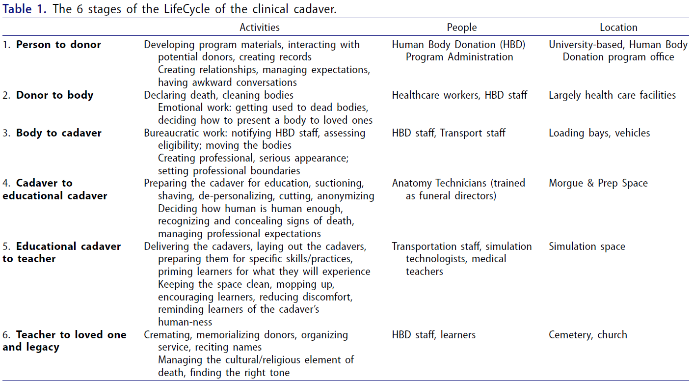 The Lifecycle of a Clinical Cadaver: A Practice-Based Ethnography