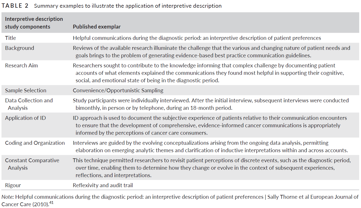 Interpretive description (ID) is a qualitative research approach with epistemological roots from within nursing science.1 This methodology was specifically developed to address limitations within formally established qualitative traditions to reliably answer questions about health and illness experience from holistic, interpretive and relational perspectives.2 Traditional social science methodologies are oriented towards shared components of experience, permitting the identification of population patterns, correlations and tendencies.2, 3 To advance the nursing science discipline, researchers needed to apply their scholarship to efforts that moved beyond the theory and into practice.4, 5 ID provides nursing science—and now medical education—with a qualitative research approach that includes processes for identifying and applying aggregated knowledge.2, 6