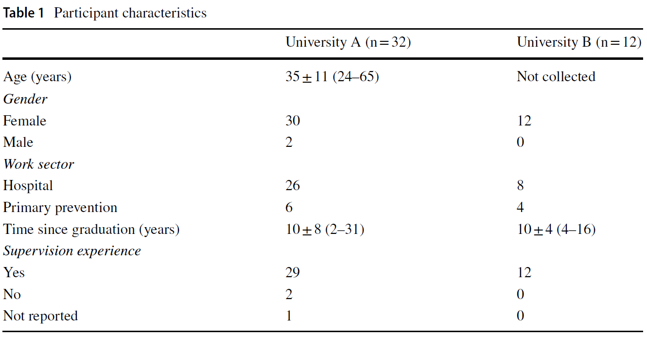 A 대학의 참가자는 2016년 또는 2017년에 처음으로 프로그램 평가에 참여한 감독자였습니다. 참가자는 자격을 갖춘 개인에게 참여를 권유하는 이메일을 보내는 자기 선택 샘플링을 통해 모집되었습니다(n = 169). 포커스 그룹이 시작될 때 서면 동의와 인구통계학적 데이터를 확보했습니다. 반구조화된 포커스 그룹은 2016년과 2017년에 참가자의 직장에서 한 차례의 원격 회의와 수도권 외 지역에 거주하는 사람들을 위한 화상 회의 세션을 통해 진행되었습니다. 포커스 그룹 질문은 문헌(van der Vleuten 외., 2012), 워킹 그룹 우선순위(Jamieson 외., 2021), 동일한 감독자 코호트에서 작성한 설문지에서 도출되었습니다. 포커스 그룹은 30분에서 90분 정도 소요되었으며 제1저자가 진행했습니다. 모든 세션은 오디오로 녹음되었고 연구자는 메모를 작성했으며(Barbour & Flick, 2018), 이후 데이터는 그대로 전사되고 비식별화되었습니다.