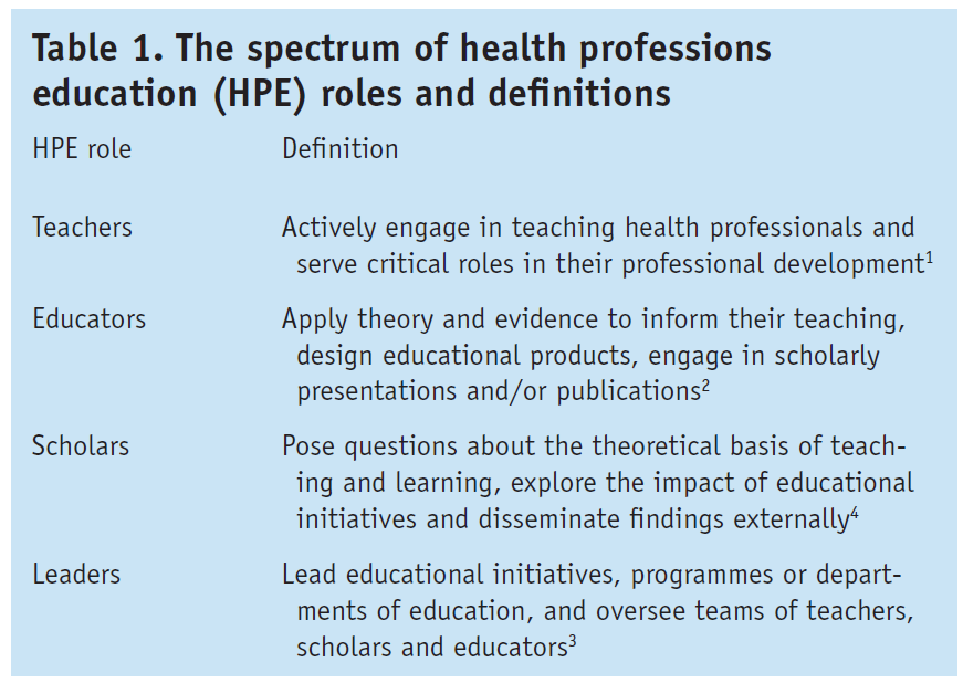 however, just as health professions educator roles vary in scope, responsibilities and nomenclature (Table 1), so do the criteria for academic progression and interpretation by different promotion committees.1–4