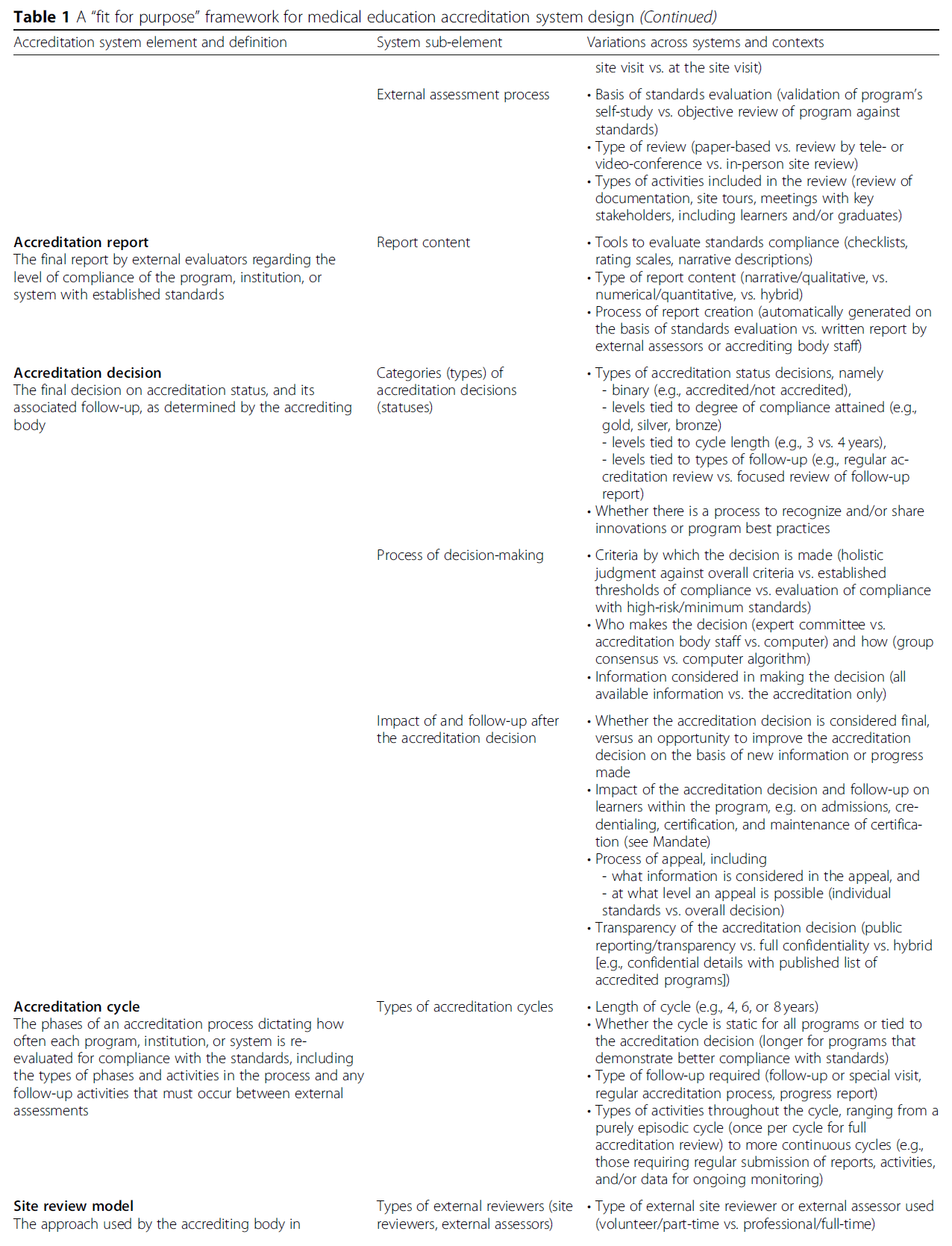 Table 1 A “fit for purpose” framework for medical education accreditation system design