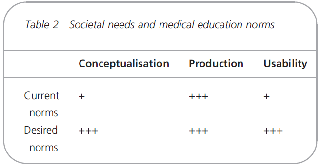 Since the introduction of norms for evaluating and accrediting medical schools in North America by the Liaison Committee on Medical Education (LCME), through the different national initiatives inspired by these and until the more recent publication of international standards by the World Federation of Medical Education (WFME), the main emphasis has been put on the domain of production, and only minor interest shown in the domains of conceptualisation and usability14–16 (Table 2).