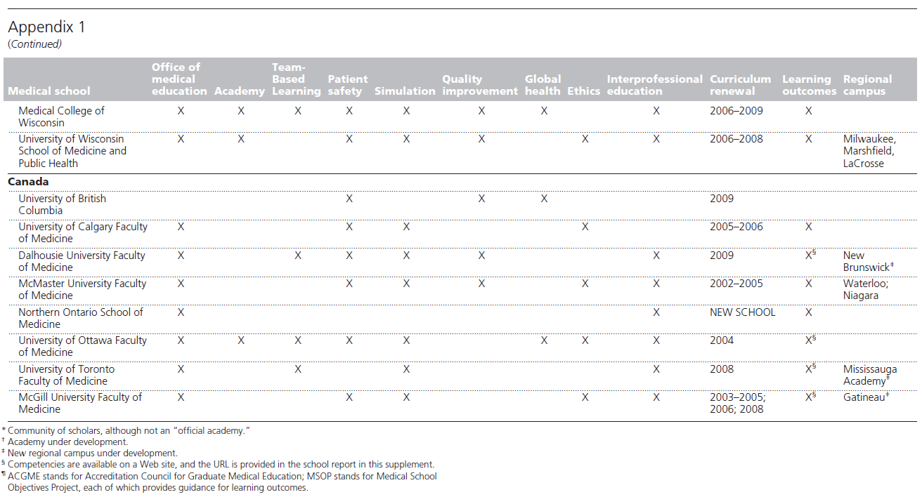 우리가 이 에세이를 쓰는 동안에도 북미의 의과대학에는 변화가 일어나고 있다. 왜냐하면 그것들은 정적이 아니라 끊임없이 진화하는 실체이기 때문이다. 앞으로 1~2년 안에 의과대학 수가 바뀌게 되는데, 새로 인가된 모든 학교의 보고서를 이 부록에 포함시키는 것은 너무 최근에 인가받은 학교들이라 할 수 없었다. 우리는 그들이 21세기 의사들을 교육하기 위한 혁신적인 프로그램을 만들면서 그들에게서 더 많은 이야기를 듣게 될 것을 알고 있습니다.