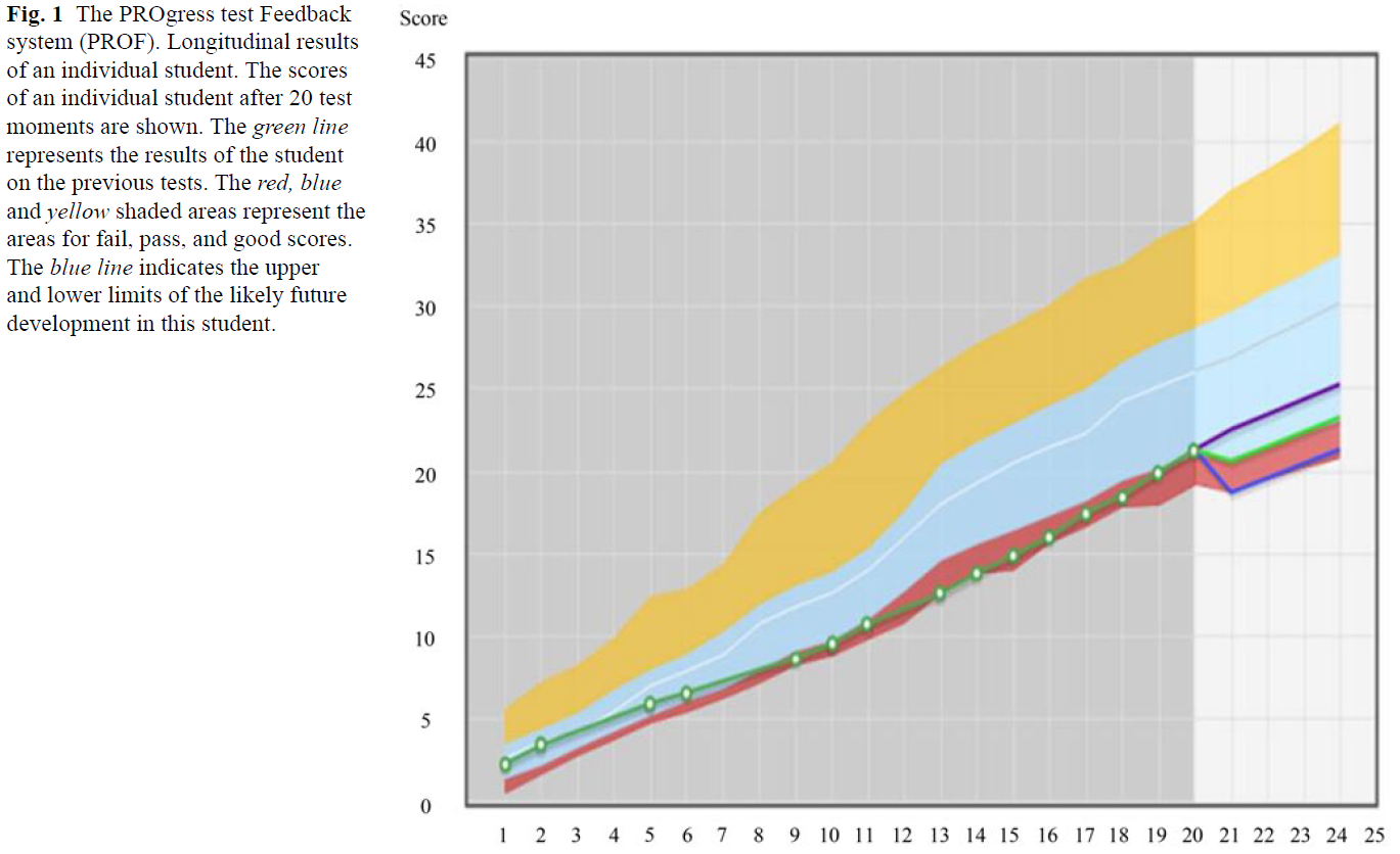 A true problem-based learning (PBL) curriculum ‘aims at acquisition and structuring of knowledge …. in an active iterative and self-directed way’ [1]. Critics may question the validity of such a programme and argue that students taught in this way may develop deficiencies in their knowledge [2]. It is a challenge to develop an assessment programme fit for such a curriculum. Assessment of knowledge and even more so monitoring knowledge growth may be considered a requirement for external and internal validation of a PBL curriculum and also other curricula. In order to address this and to prove that knowledge acquisition is at the required level, progress testing was introduced in the 1970s in Missouri and Maastricht [3, 4]. The use of progress testing has increased ever since. Nowadays there is no continent (except for Antarctica) where progress testing is not used [5]. In this short overview we describe the present situation including the formative and summative aspects of progress testing in the Netherlands. Furthermore, its use for benchmarking will be discussed.