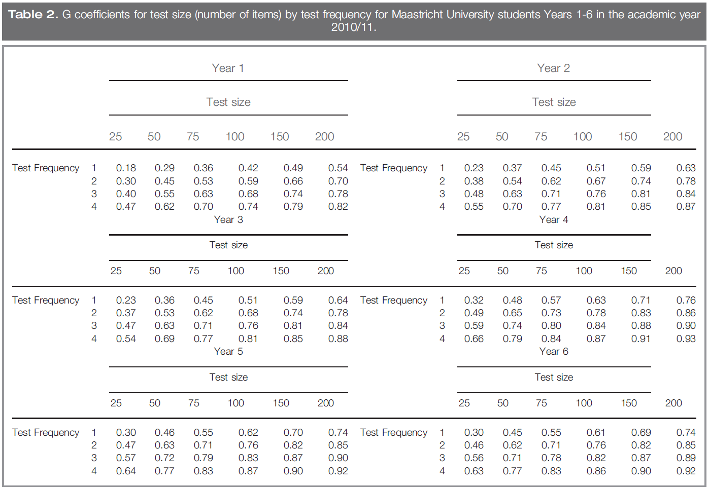 Additionally, the longitudinal data can serve as a transparent quality assurance measure for programme reviews by providing an evaluation of the extent to which a school is meeting its curriculum objectives (van der Vleuten et al. 1996; Verhoeven et al. 2005; De Champlain et al. 2010). The test also provides more reliable data for high-stakes assessment decisions by using multiple measures of continuous learning rather than a one-shot method (Schuwirth 2007).