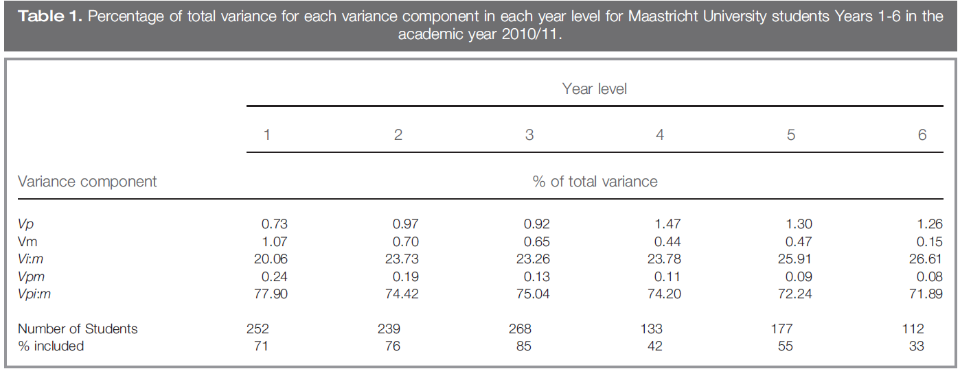 - The resultant scores provide longitudinal, repeated measures, curriculum-independent assessment of the objectives (in knowledge) of the entire medical programme. (van der Vleuten et al. 1996).