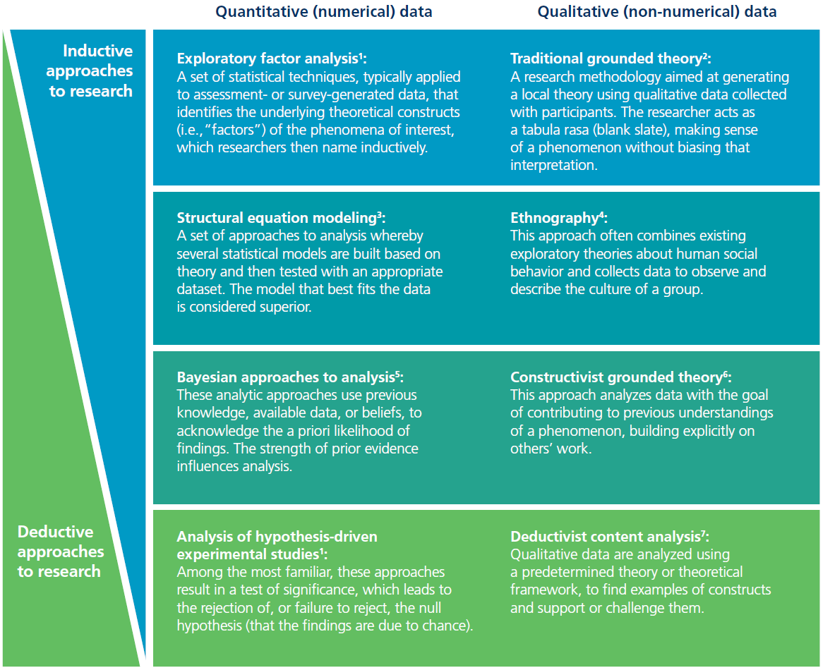 This approach can aid in understanding how the quality of reasoning—judged by, for example, the clarity, coherence, and plausibility of the claims and evidence—promotes interaction between learner and teacher or peers and thus affects the quality of the learning process. Just as researchers might bring together qualitative interview data and quantitative assessment data to more fully understand both the processes and outcomes of a given educational intervention, they can use multiple theories to understand different aspects and perspectives of an HPE context.