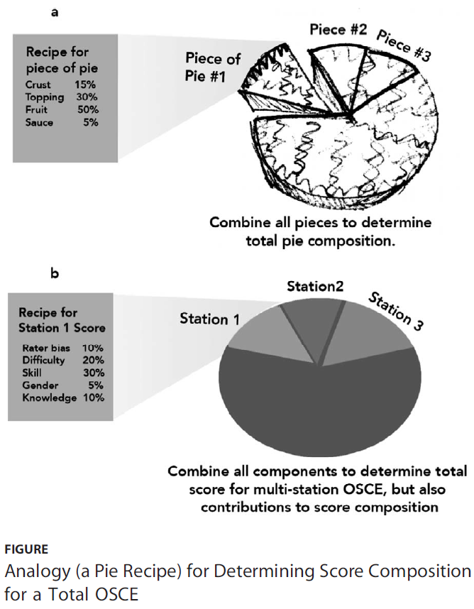 수행능력 기반 평가에서 우리는 평가 점수(예: 비율 편향, 항목 또는 스테이션의 상대적 난이도, 평가자 또는 검사자의 주의력 또는 기분, 표준화된 환자의 능력 및 전체 환경)에 대한 잠재적 영향을 고려해야 한다.3.7