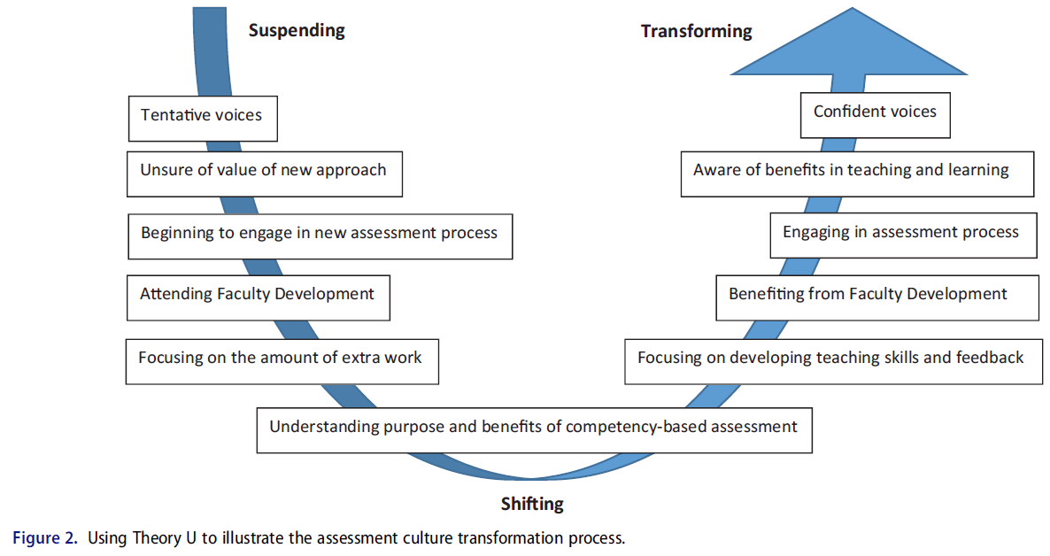 - Moving down the left side of the U, they began to suspend traditional beliefs about assessment, attempting to make sense of new assessment strategies, and then begin to let go of pre-CBME norms.