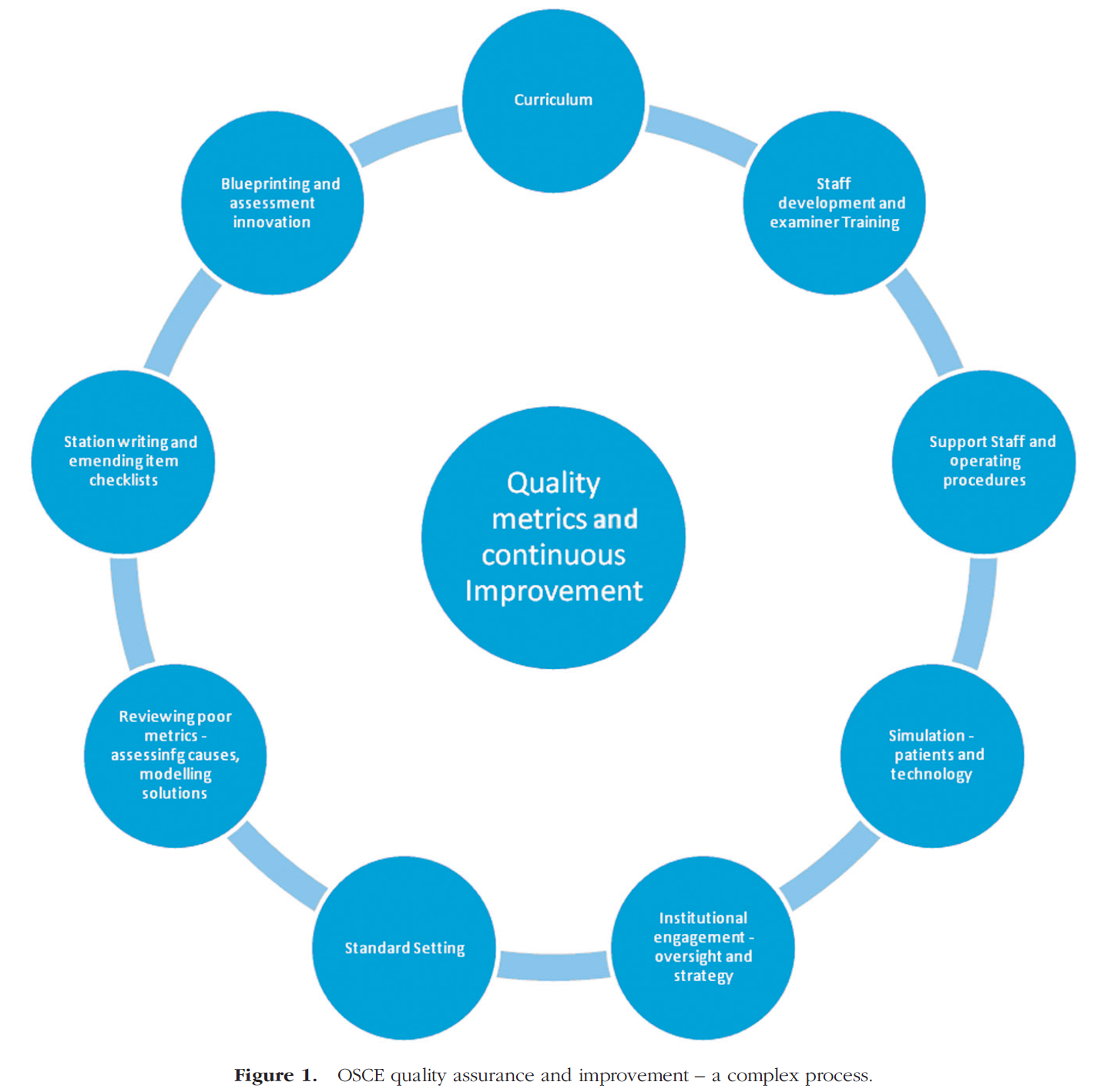 It is important to recognise that a review of theOSCE metrics is only part of the overall process of reviewing OSCE quality, which needs to embrace all relationships in the wider assessment process (Figure 1).