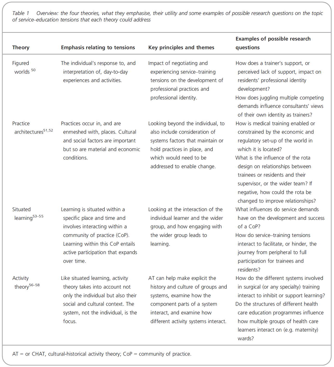 A strength of AT is that it provides a theoretical lens for understanding and analysing service– education tensions,