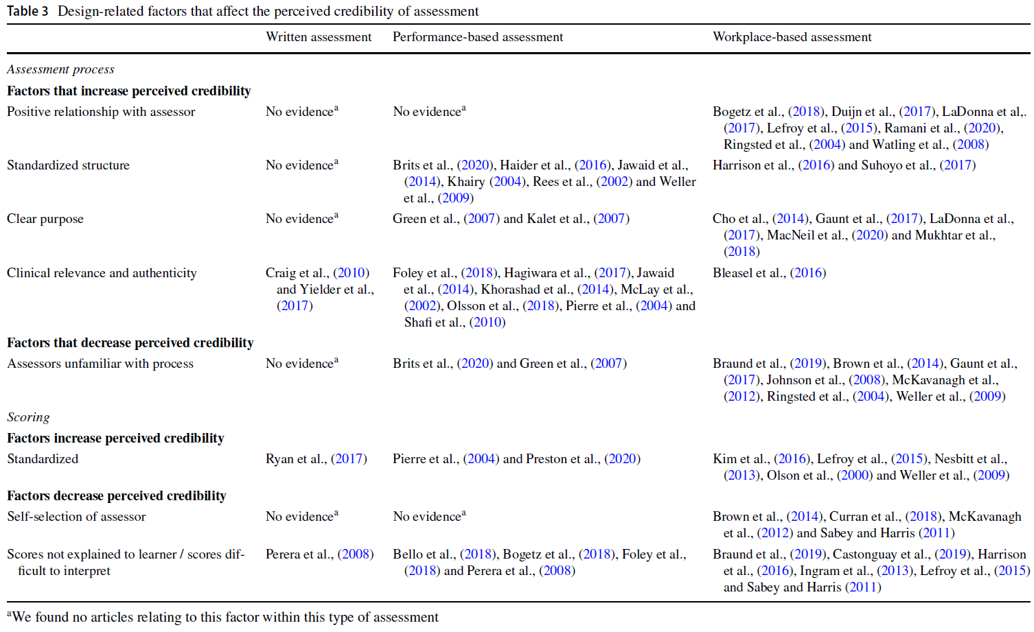 Table 3 Design-related factors that affect the perceived credibility of assessment