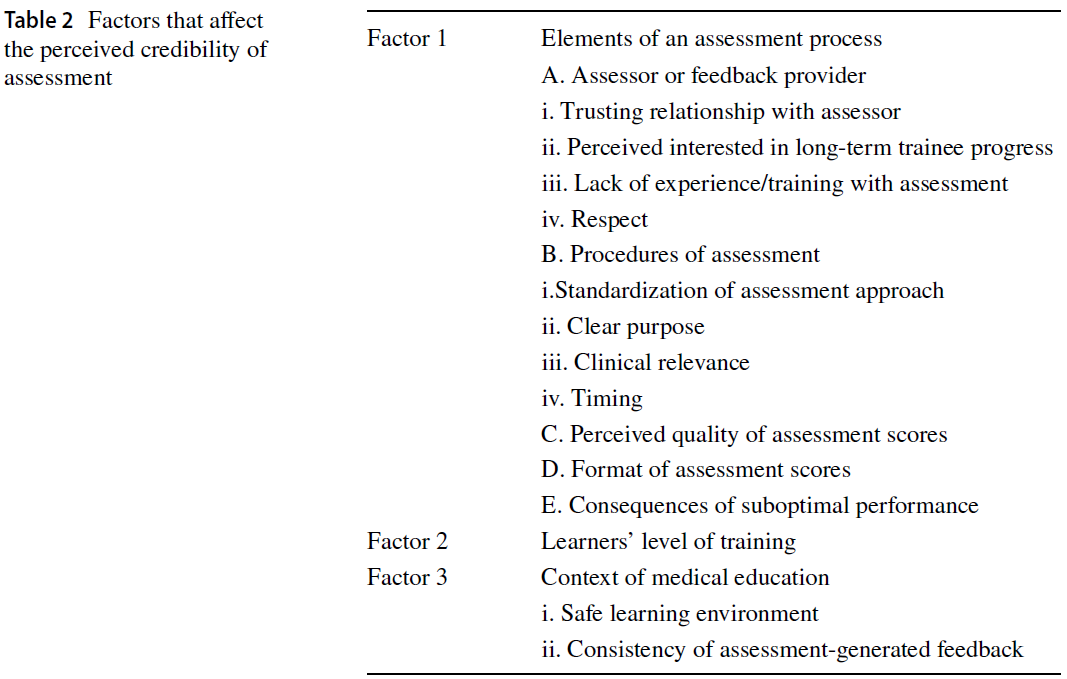 Factors affecting perceived credibility of assessment in medical education: A scoping review (Adv Health Sci Educ Theory Pract. 2021)