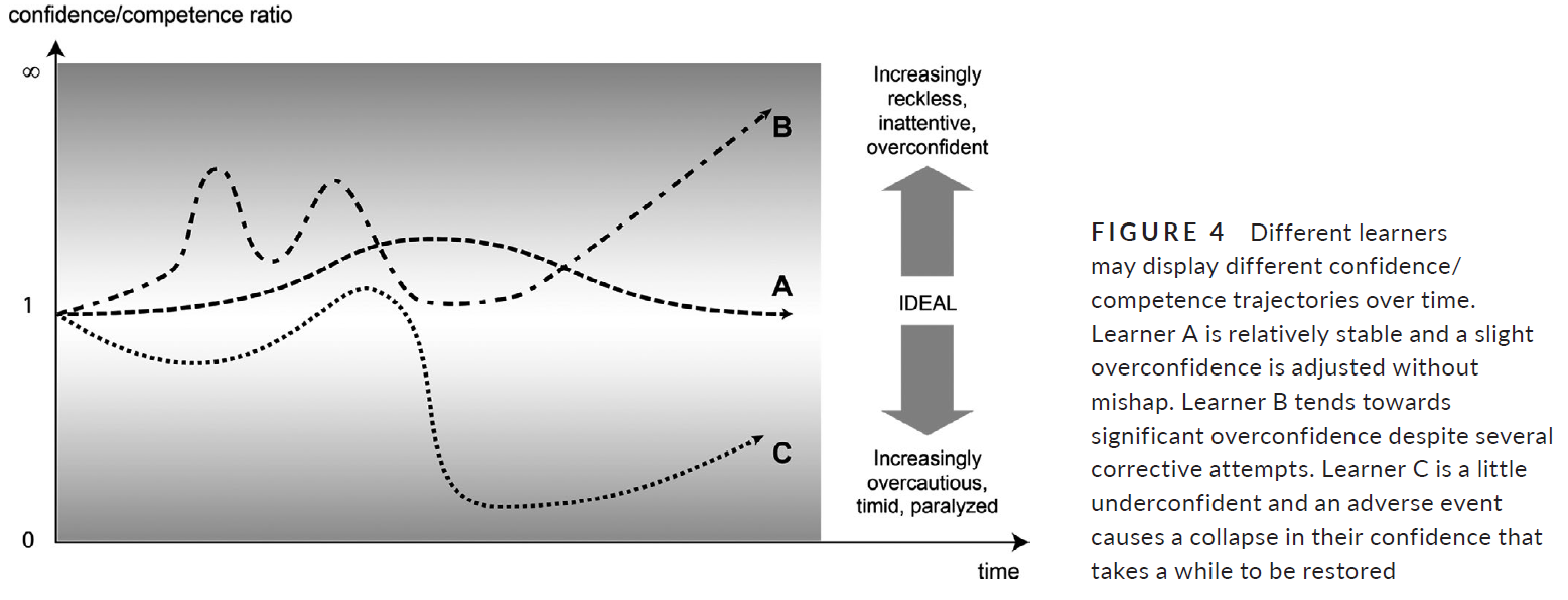 Research should also determine what are the most effective approaches for teaching confidence and guiding others to self-calibrate their confidence. This could include personalised coaching and simulation-based strategies. The relationship between confidence and competence also emphasises the importance of ensuring psychological safety among our learners and developing mitigation strategies for those suffering from imposter syndrome and similar unwarranted anxieties.26
