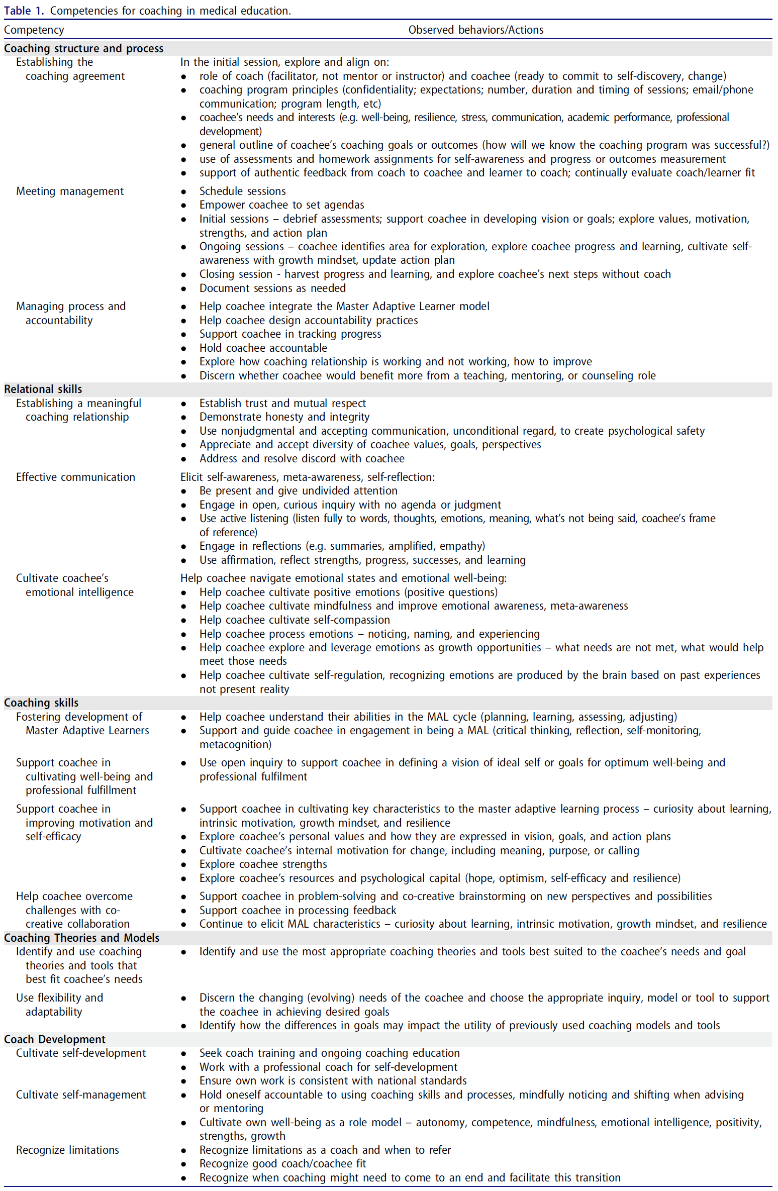 Beyond advising and mentoring: Competencies for coaching in medical education