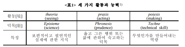 - [프랙시스]는 포아시스의 최종 산물보다는 실천과 행동을 통해 '좋은' 삶을 촉진하고자 하는 활동을 말한다.