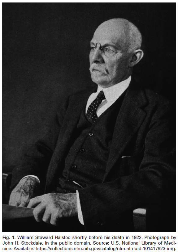 Halsted moved to Baltimore and began surgical research on dogs in William Welch’s laboratory at Hopkins. In the wake of some brilliant animal research on intestinal anastomoses, Halsted was appointed head of the outpatient department, acting surgeon to Johns Hopkins Hospital, and associate professor of surgery. Continued success resulted in Osler and William Welch (1850–1934) recommending Halsted to be surgeon-in-chief in 1890 and Hopkins’ first professor of surgery in 1892.6,7 Though everyone believed that Halsted’s addiction was cured at the time of these appointments, it later became clear that wasn’t the case and that he was able to hide his addiction under a veil of eccentricity and a pyramid of residents.