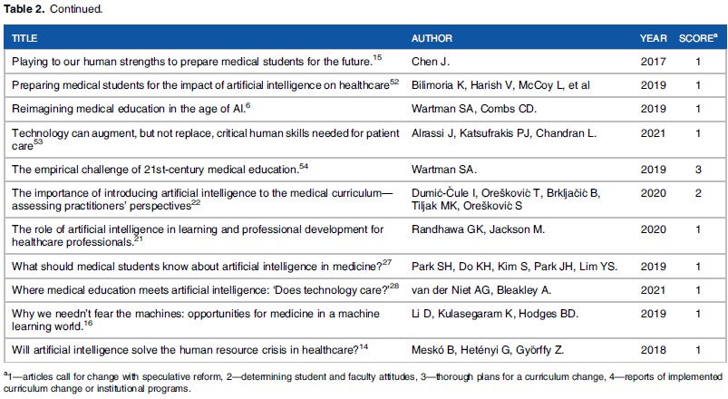 미래의 의사에게 AI 교육시키기: 통합적 리뷰와 변화 제안(J Med Educ Curric Dev. 2021)