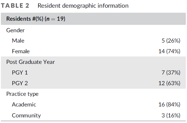 This study was conducted in the context of a single Family Medicine residency programme located in urban Canada. Medical residents complete a 2-year generalist training programme to become Family Physicians, with an optional third year of enhanced skill training available to some. This large residency programme is affiliated with a medical-doctoral university, admitting 200 residents each year across three training sites. Two training sites are affiliated with academic family medicine practices, and one with multiple community-based family medicine practices.