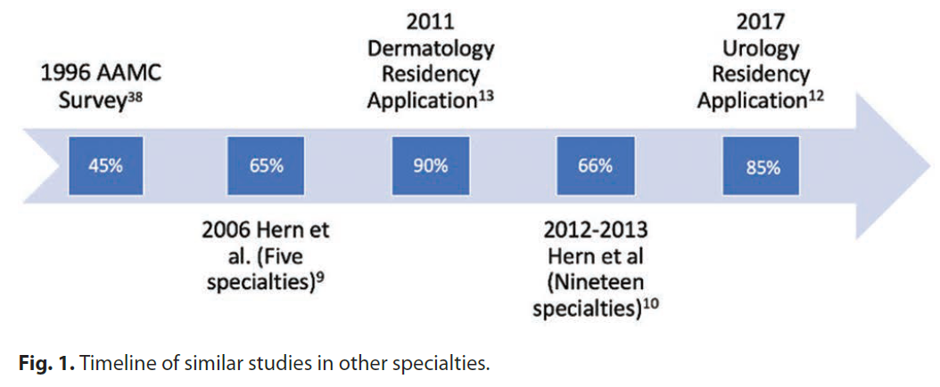 Plastic surgery is one of the most competitive residencies, and this trend has only intensified in recent years.1,2 In the 2020 and 2021 application cycles, 30.1% of United States medical student applicants for integrated plastic surgery positions failed to match. This figure rose to 38.4% (108 applicants) in 2022.3–5 During the 2022 match cycle, there were 411 applicants for the 194 PGY-1 spots offered by 86 integrated plastic and reconstructive surgery (PRS) programs.6,7 Based on the 2022 National Resident Matching Program (NRMP) report, 281 (80%) applicants were educated in US medical schools, and this group secured 173 (89.2%) of the positions.5 The qualifications of successful candidates in plastic surgery are the most competitive of all specialties.