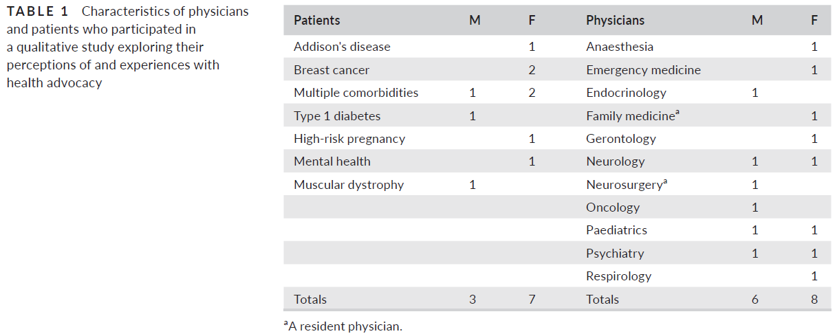 - Both patient and physician participants perceived that doctors either did or did not advocate; for physician participants, however, any attempt at advocacy was perceived as good enough.