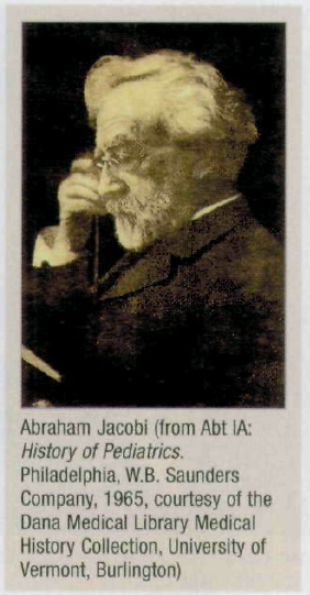 Pediatrics was in its infancy when American medicine was attempting to define itself professionally Job Lewis Smith and Abraham Jacobi, the fathers of American pediatrics, were both dedicated to distributing health care to the underrep resented children of the age. They worked tirelessly, in conjunction with the concurrent public health movement, to improve conditions for children and laid the groundwork for a profession interested as much in patient advocacy as acute care of disease. In 1887, they helped found the American Pediatric Society, the first medical specialty society in the US.^'^ Jacobi especially strove to define pediatrics in terms of distinct rationales and therapeutics.