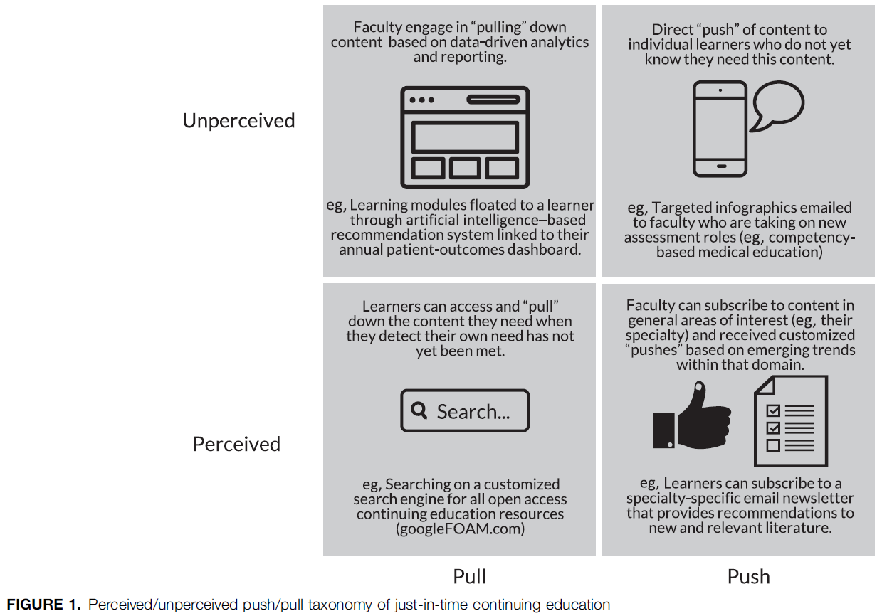 Just-in-Time Continuing Education: Perceived and Unperceived, Pull and Push Taxonomy